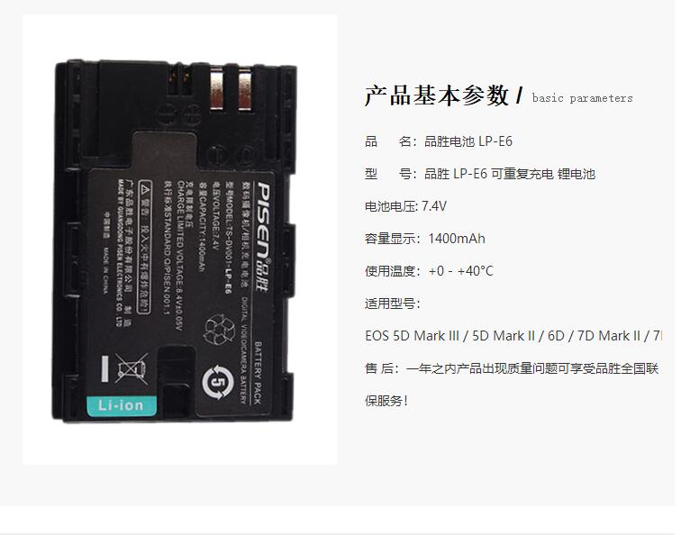 品勝電池 LP-E6數(shù)碼單反相機適用于佳能7D6D60D70D80D5D2/5D3/5D4/7D2 單位:塊