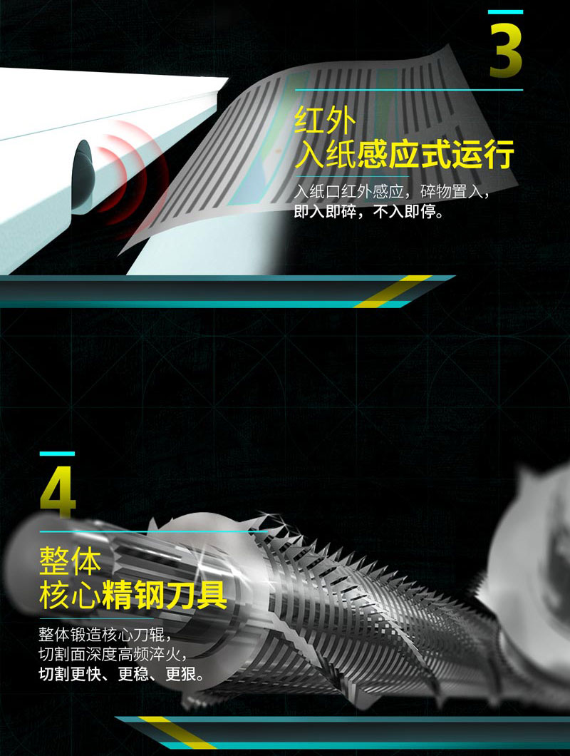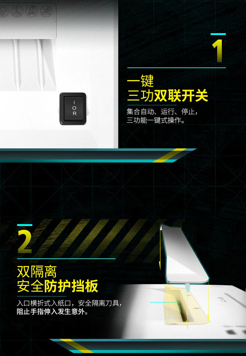 生產(chǎn)制造系中國(guó)保密協(xié)會(huì)會(huì)員單位  安全保護(hù)入紙擋板全面安全      滿紙門開(kāi)多種運(yùn)行狀態(tài)LED顯示 光盤分類回收  PWM電流控制確保電機(jī)超靜音