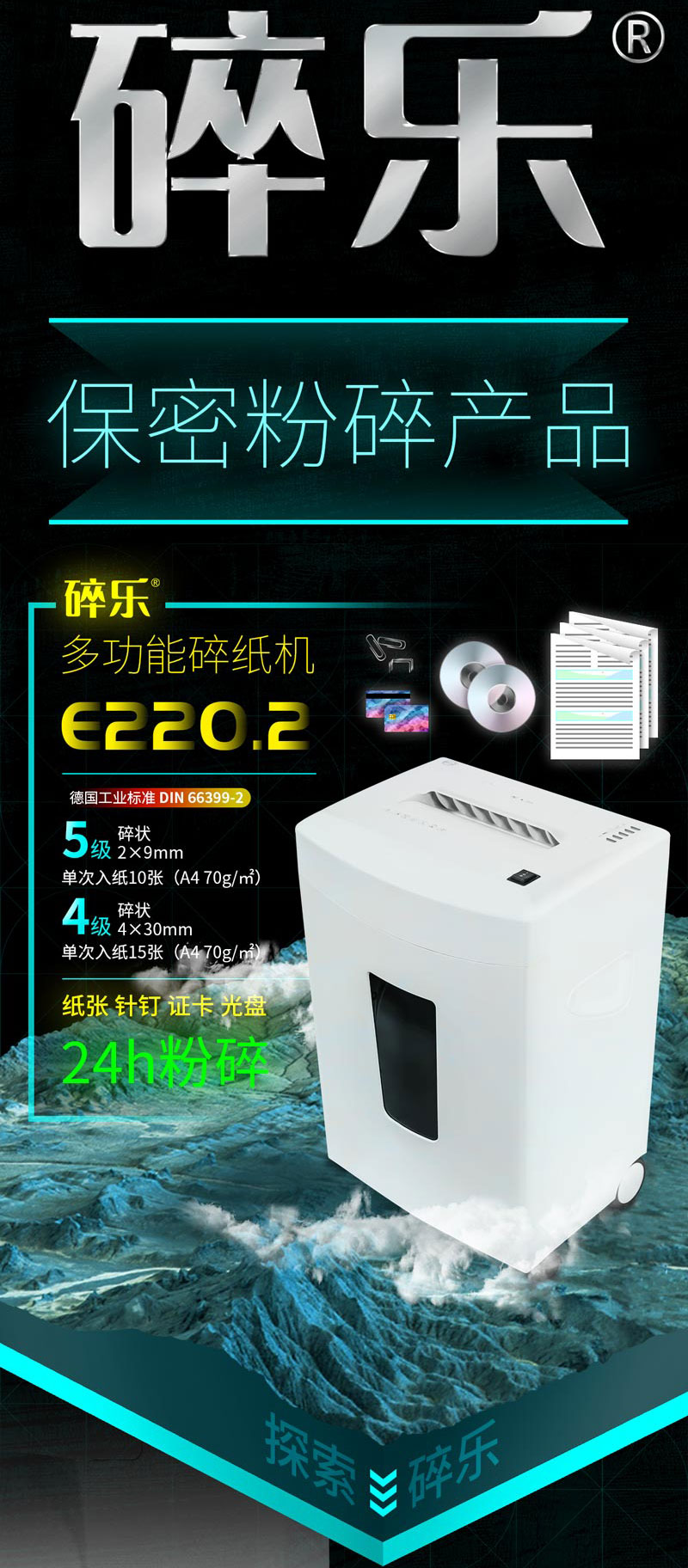 碎樂碎紙機(jī) E220.2 德[DIN 66399]4級保密 多功能碎紙機(jī) 單位:臺
