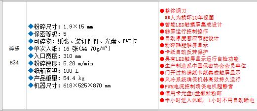 碎樂碎紙機 B34 德[DIN 66399]5級保密 辦公碎紙機 多功能碎紙機 單位:臺