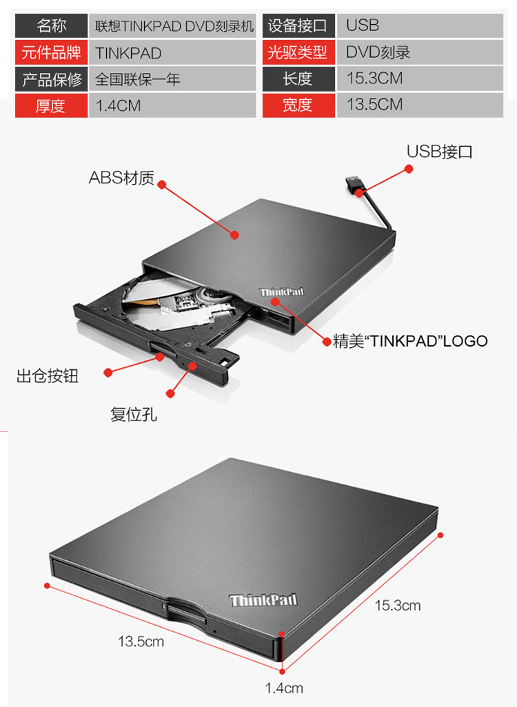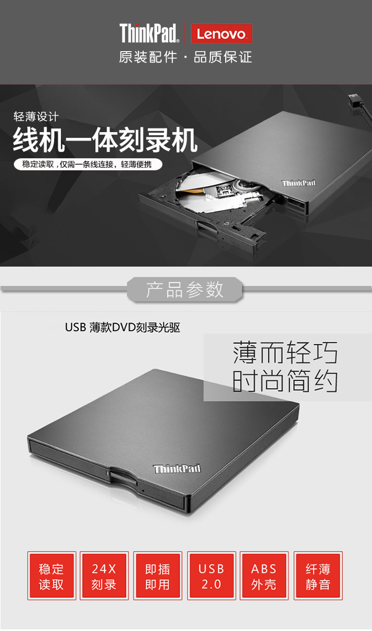 聯(lián)想外置光驅(qū) 4XA0F33838 DVD刻錄機(jī) 黑色 單位:個(gè)
