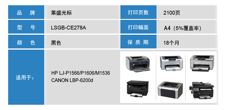 萊盛光標(biāo) LSGB-CE278A 黑色粉盒 適用:HP LJ-P1566/P1606/M1536 單位:支
