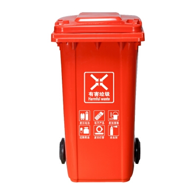 ABEPC 240L帶輪 紅色 有害垃圾桶 物業(yè)環(huán)衛(wèi)垃圾分類商用帶蓋分類垃圾桶果皮箱 單個(gè)裝
