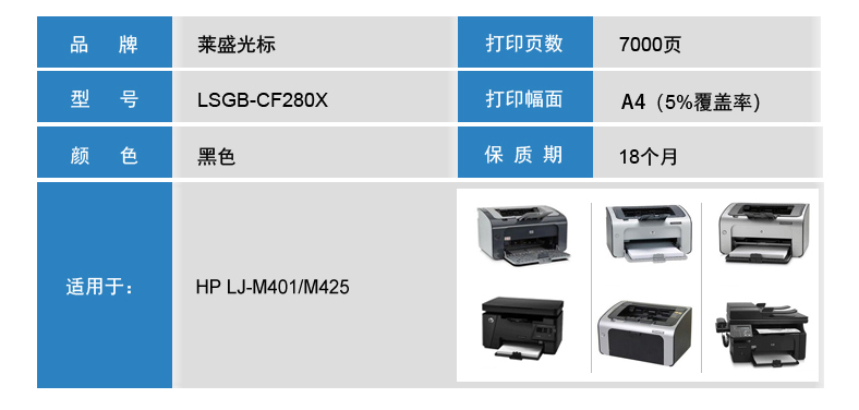 萊盛光標 LSGB-CF280X 黑色粉盒 適用:HP LJ-M401/M425 單位:支