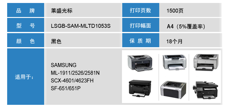 萊盛光標(biāo) LSGB-SAM-MLTD1053S 黑色粉盒 適用:SAMSUNG ML-1911/2526/2581 單位:支