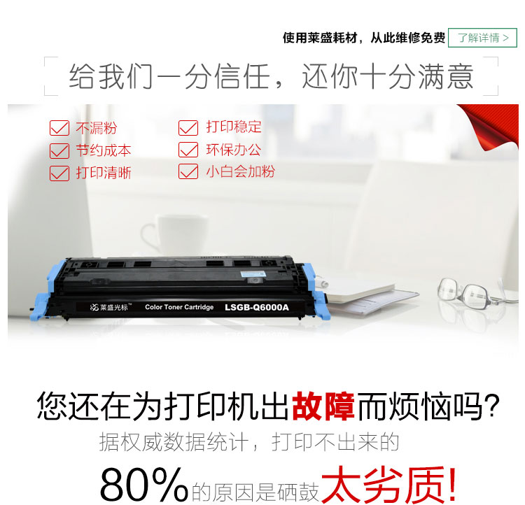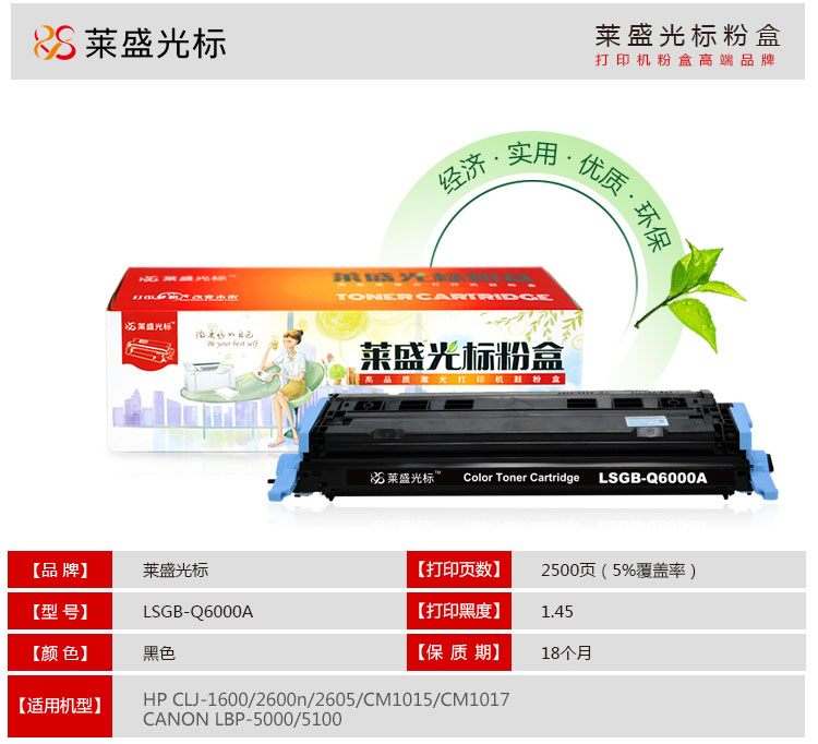 萊盛光標(biāo) LSGB-Q6000A 黑色粉盒 適用:HP CLJ-1600/2600n/2605/CM1015/CM1017 CANON LBP-5000/5100 單位:支