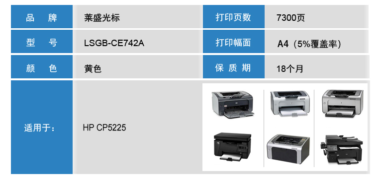萊盛光標(biāo) LSGB-CE742A 黃色粉盒 適用:HP CP5225 單位:支