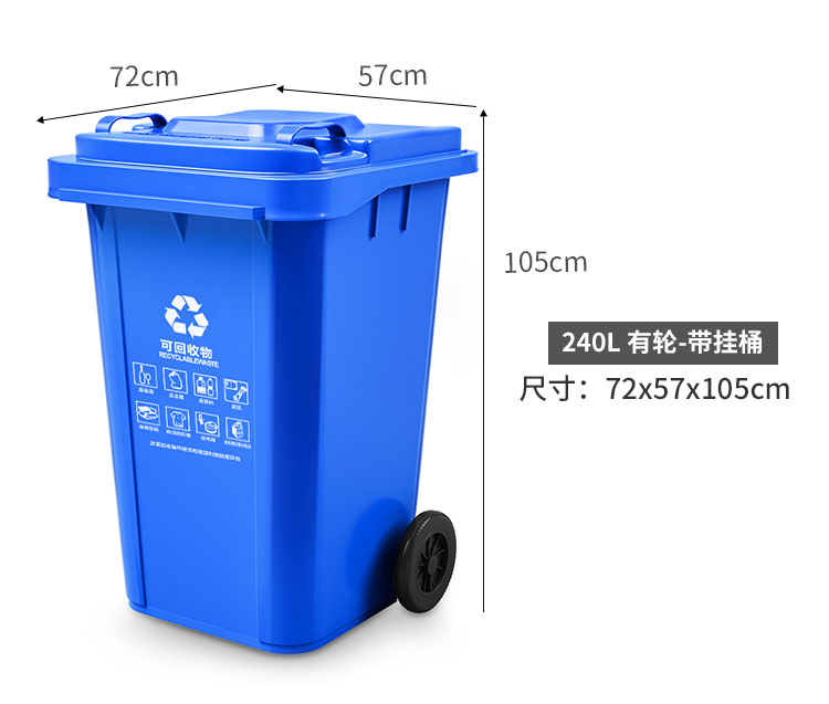 舒蔻 100L帶輪 黑色 干垃圾桶 物業(yè)環(huán)衛(wèi)垃圾分類商用帶蓋分類垃圾桶果皮箱 單個(gè)裝