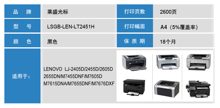 萊盛光標(biāo) LSGB-LEN-LT2451H 黑色粉盒 適用:LENOVO LJ-2405D/2455D/2605D/2655 單位:支