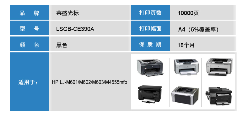 萊盛光標(biāo) LSGB-CE390A 黑色粉盒 適用:HP LJ-M601/M602/M603/M4555mfp 單位:支