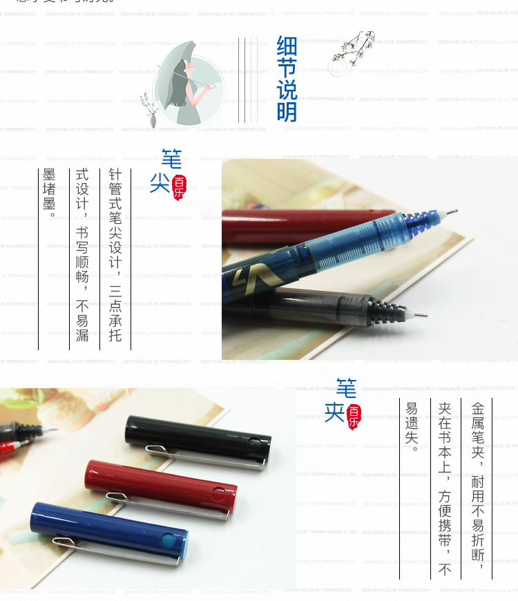 百樂(lè) BX-V7 0.7mm 直液式針管簽字筆 紅色 單支裝
