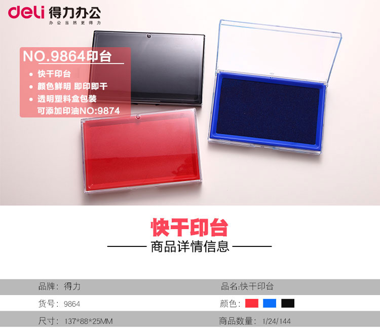 得力 9864 得力印臺印泥/辦公印臺/長方形印臺紅色 單位:個