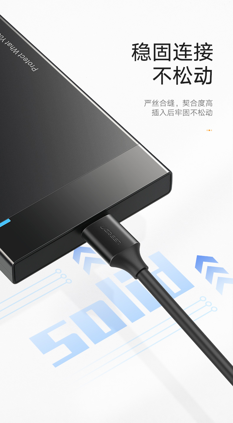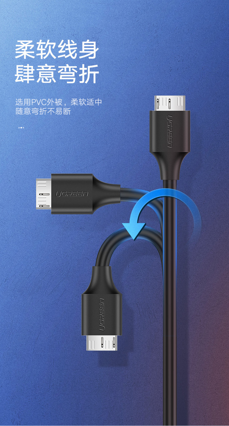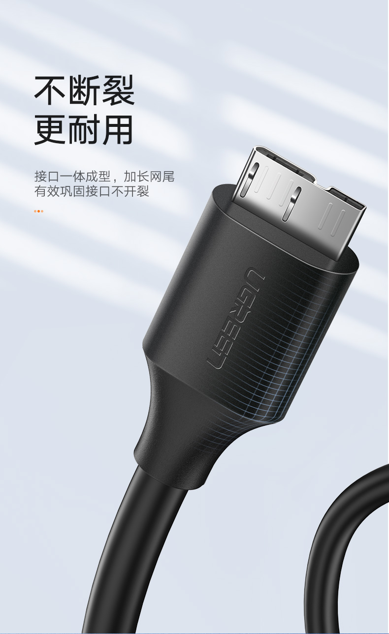 綠聯(lián) US130 數(shù)據(jù)連接線 Micro USB3.0高速傳輸 移動硬盤盒子轉(zhuǎn)接線 1米 黑色 單位:根