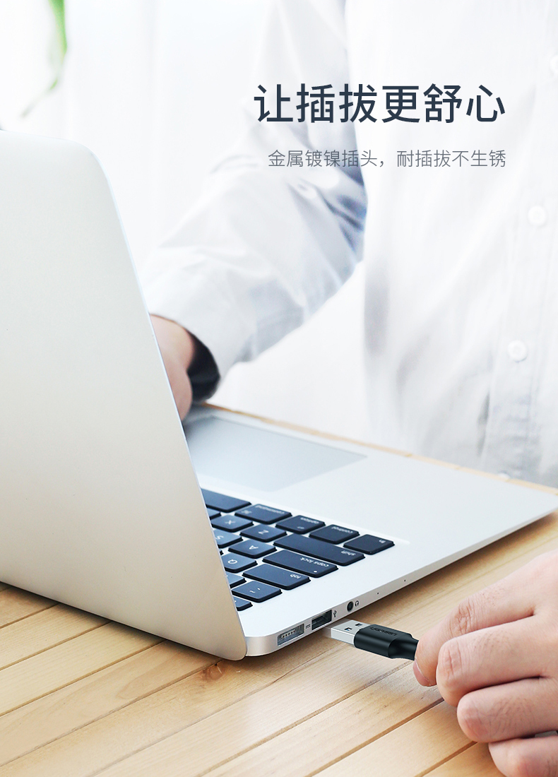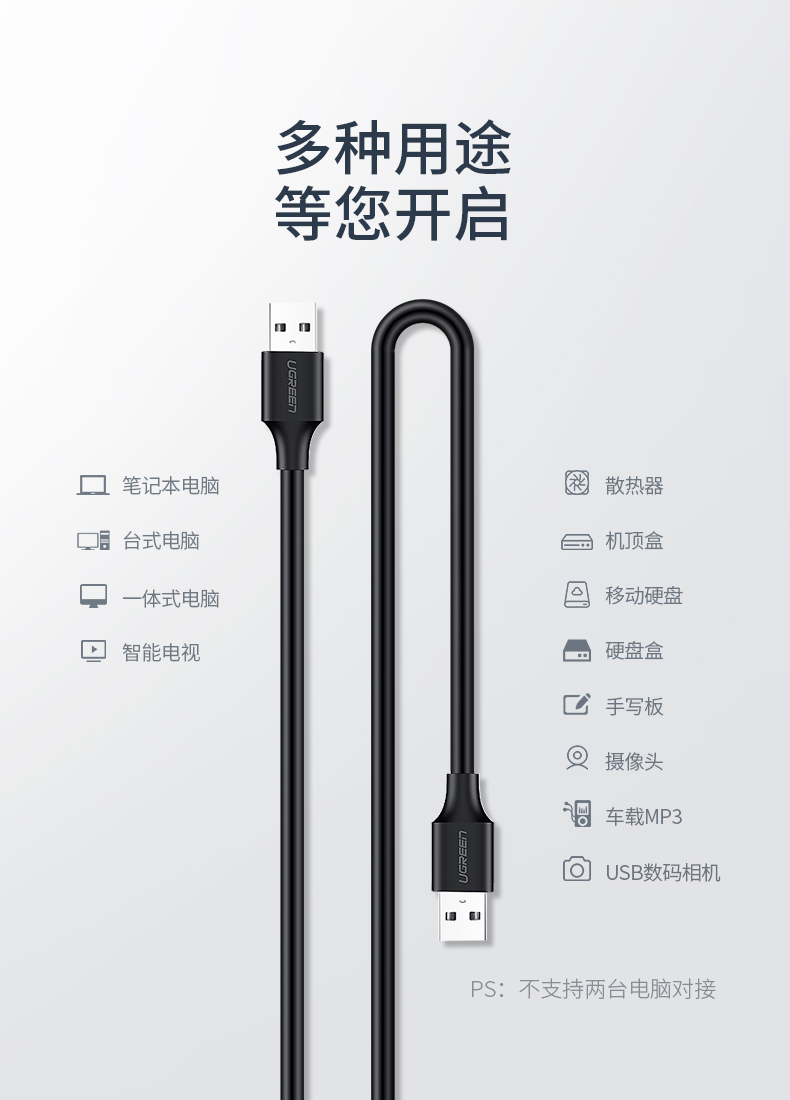 綠聯(lián) US102 USB2.0數(shù)據(jù)線雙頭移動硬盤盒高速傳輸連接線 3米 黑色 單位:根