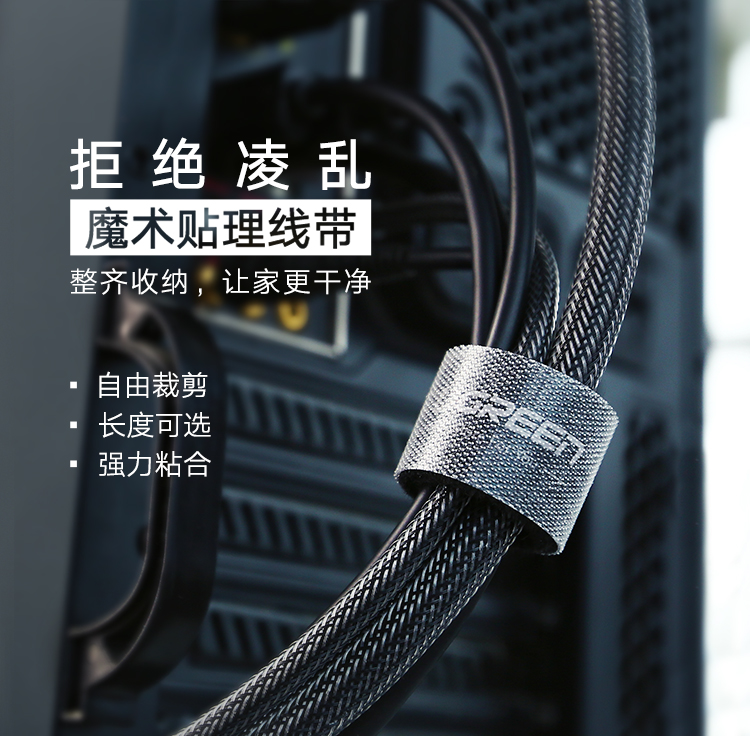 綠聯(lián)理線器 LP124 束線帶理線器魔術(shù)貼背直徑20MM 黑色 5米 單位:包