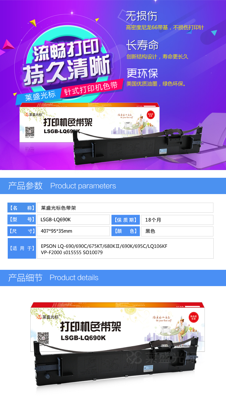 萊盛光標(biāo) LSGB-LQ690K 色帶架 適用:EPSON LQ-690/690C/690K/675KT/680KⅡ 單位:支