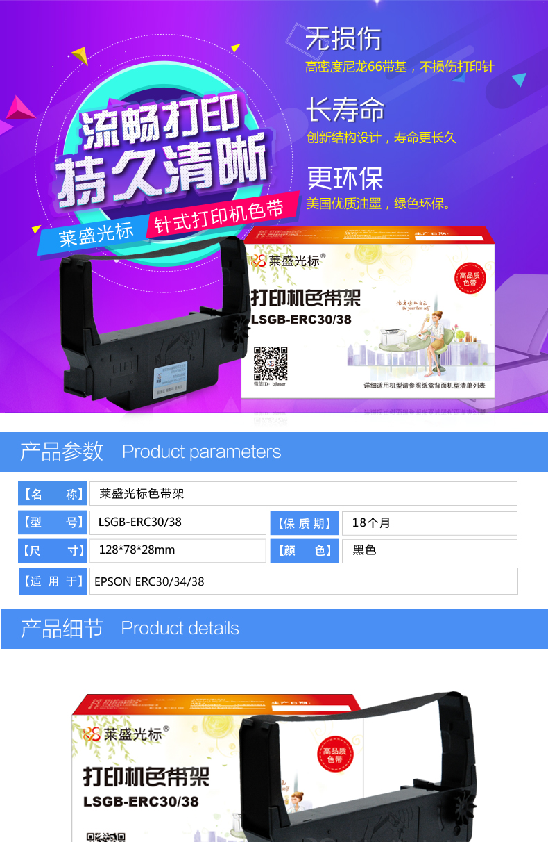 萊盛光標(biāo) LSGB-ERC30/38 色帶架 適用:EPSON ERC-30/34/38 單位:支