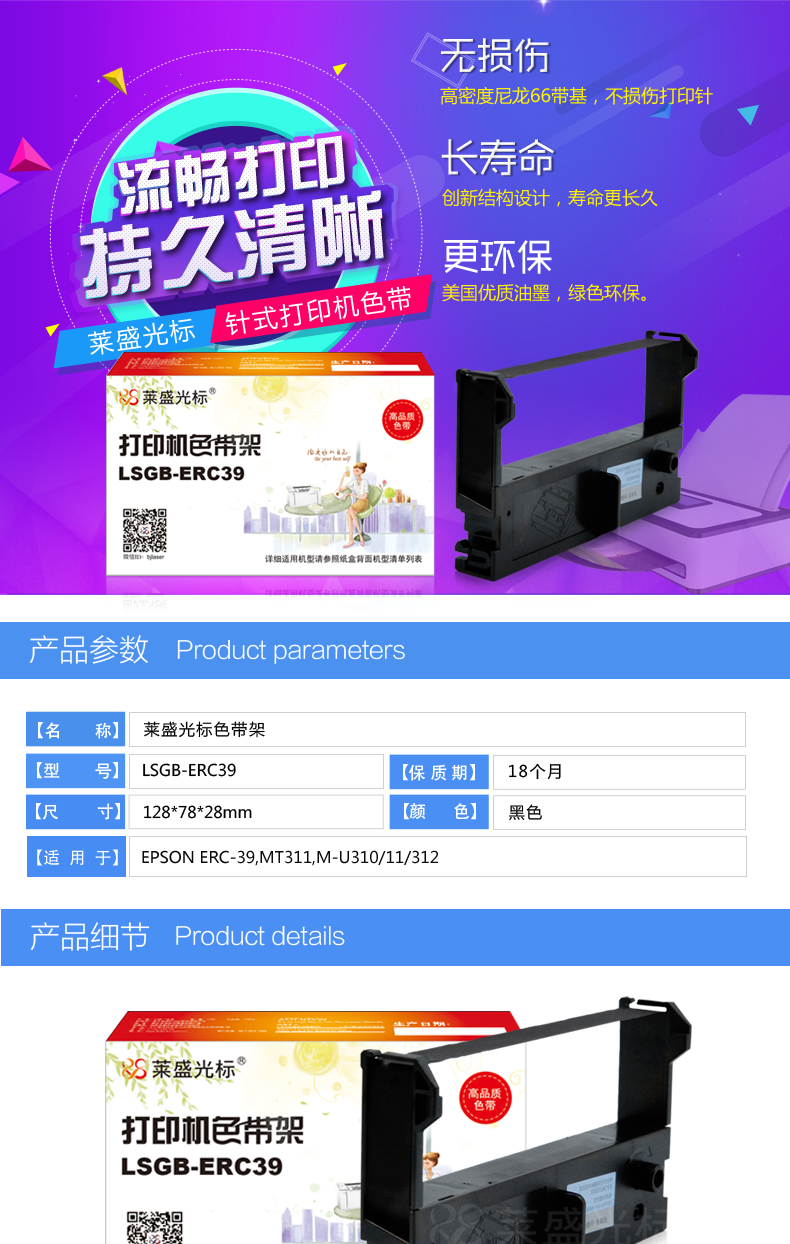 萊盛光標(biāo) LSGB-ERC39 色帶架 適用:EPSON ERC-39,MT311,M-U310/11/312 單位:支
