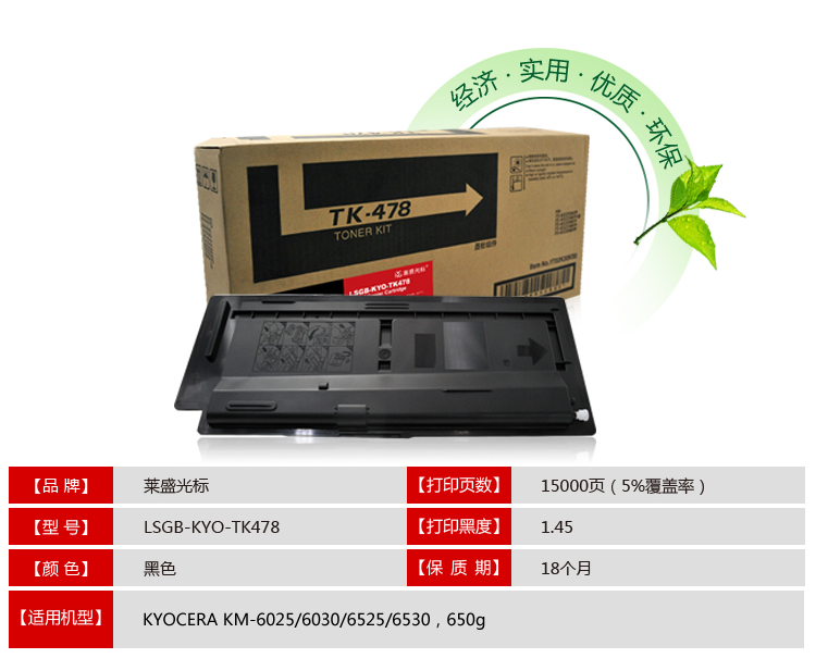 萊盛光標(biāo) LSGB-KYO-TK478 黑色硒鼓 適用:KYOCERA KM-6025/6030/6525/6530 單位:支