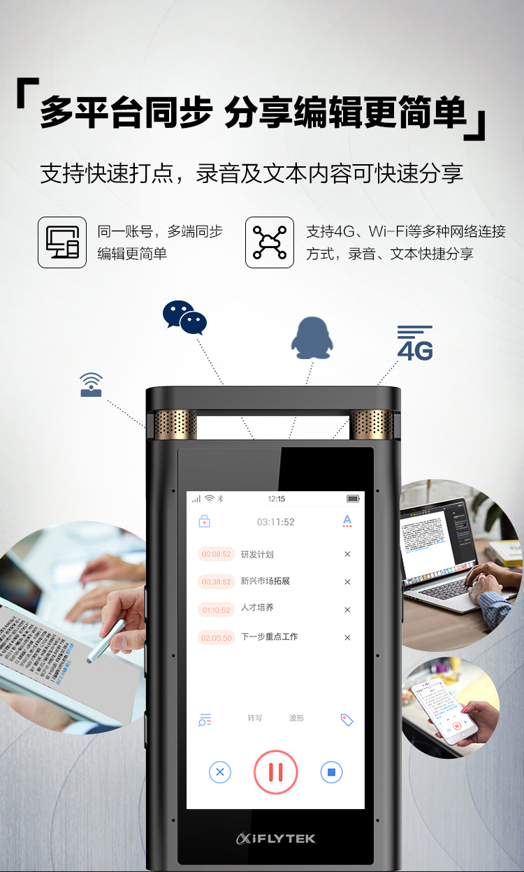 科大訊飛錄音筆 SR501 實時錄音轉(zhuǎn)文字中英翻譯 16G+云存儲 灰色 單位:支