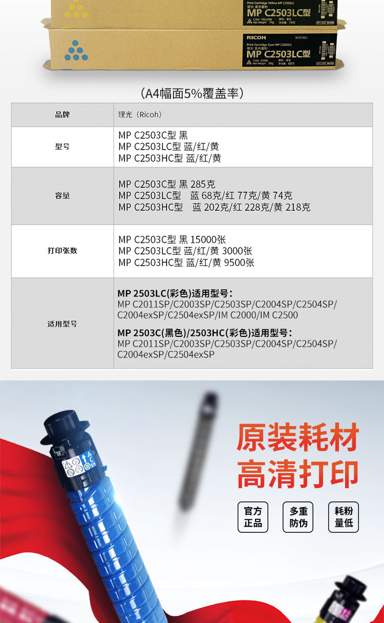 理光墨粉 MPC2503HC 青色 適用MP C2003SP/C2503SP/C2011SP/C2004SP/C2504SP 單位:支