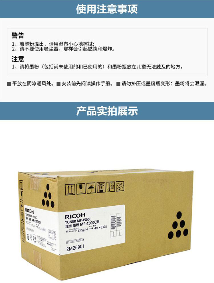 理光墨粉 MP4500C 黑色 適用MP4000B/4000BSP/5000B/5000BSP/4001/5001/4002/4002SP/5002/5002SP 單位:支