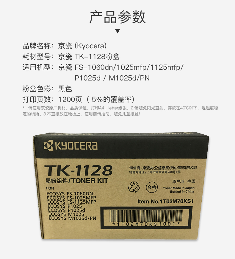 京瓷墨粉 TK-1128 黑色墨粉 適用:京瓷FS-1060dn/FS-1025/FS-1125MFP 單位:支