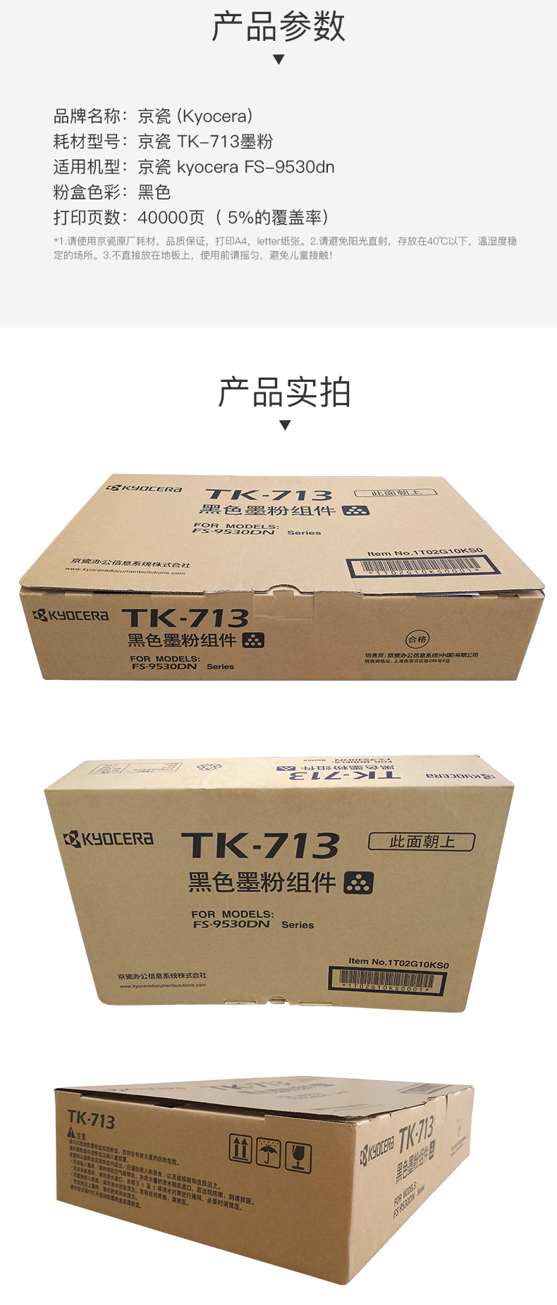 京瓷墨粉 TK-713 黑色墨粉 適用:京瓷FS-9530dn 單位:支
