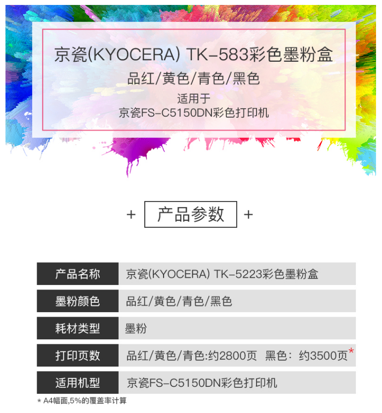 京瓷墨粉 TK-583 紅色墨粉 適:用京瓷FS-5150DN激光打印機 單位:支
