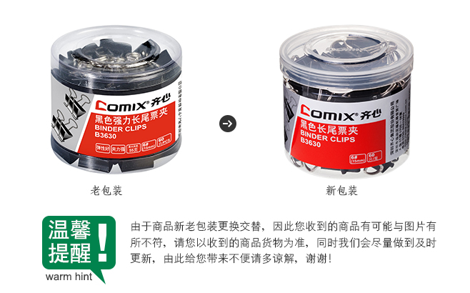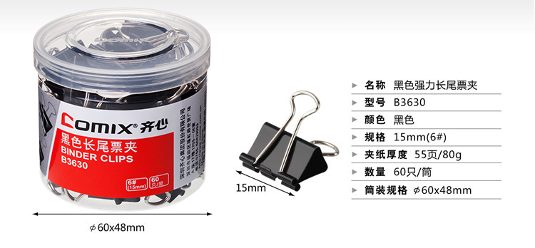 齊心(Comix) B3630黑色長尾夾 單位:筒