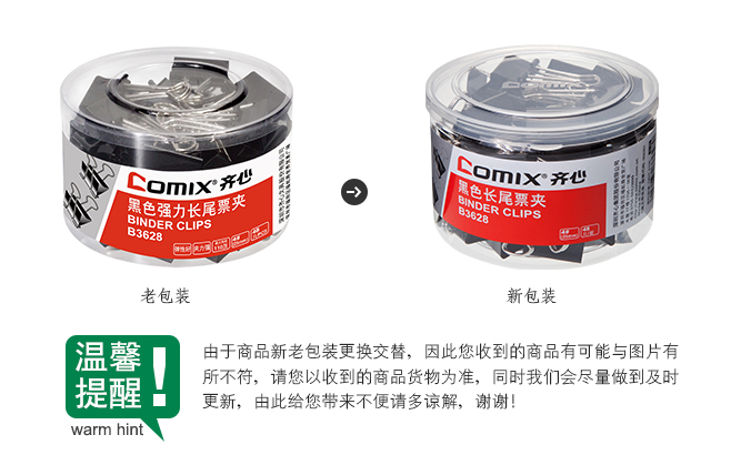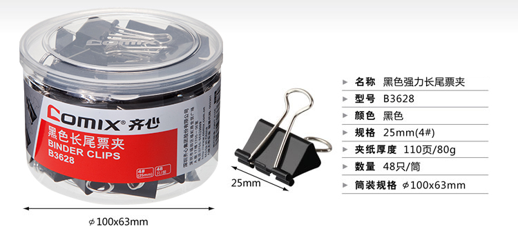 齊心(Comix) B3628 黑色長尾夾 單位:筒