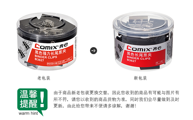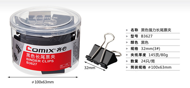 齊心(Comix) B3627 黑色長(zhǎng)尾夾 單位:筒