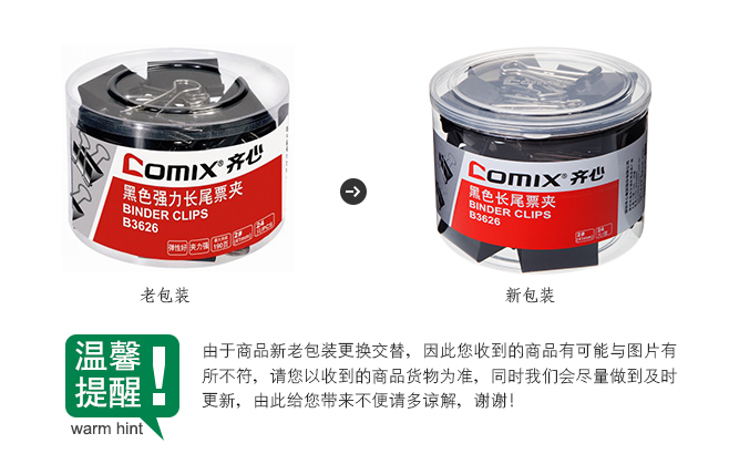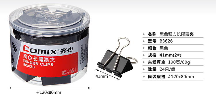 齊心(Comix) B3626 黑色長(zhǎng)尾夾 單位:筒