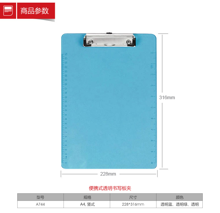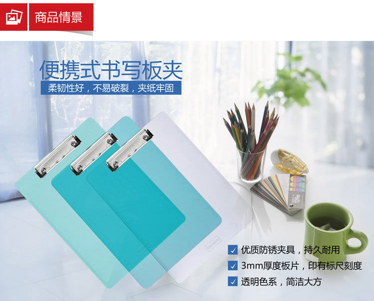 寫字板夾書寫板本夾子墊板夾 A4透明平板夾 透明藍色隨機發(fā)