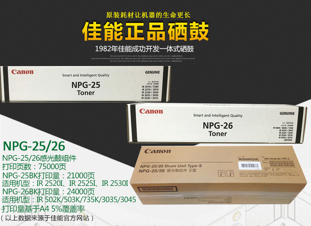 佳能墨粉 NPG-25 黑色墨粉 適用:IR 2520I,IR 2525I,IR 2530I 單位:支