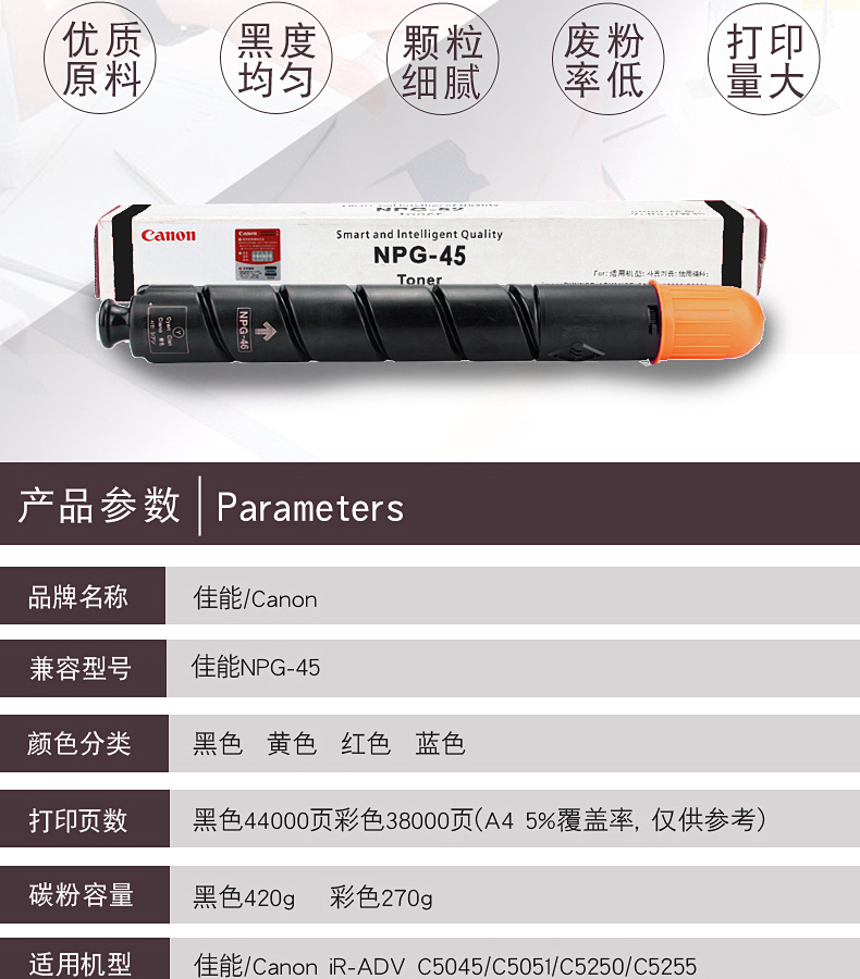 佳能墨粉 NPG-45C 青色墨粉 適用:5045 C5051 C5250 C5255 單位:支