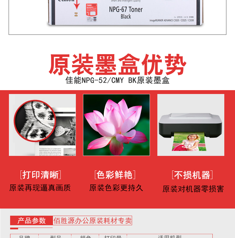 佳能墨粉 NPG-67 黑色墨粉 適用:C3020/C3320/C3520/C3525 單位:支