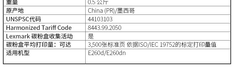 利盟墨粉 E260A11P 黑色 適用E260/360dn/d E460dn/dw E462dtn(約3500頁) 單位:支