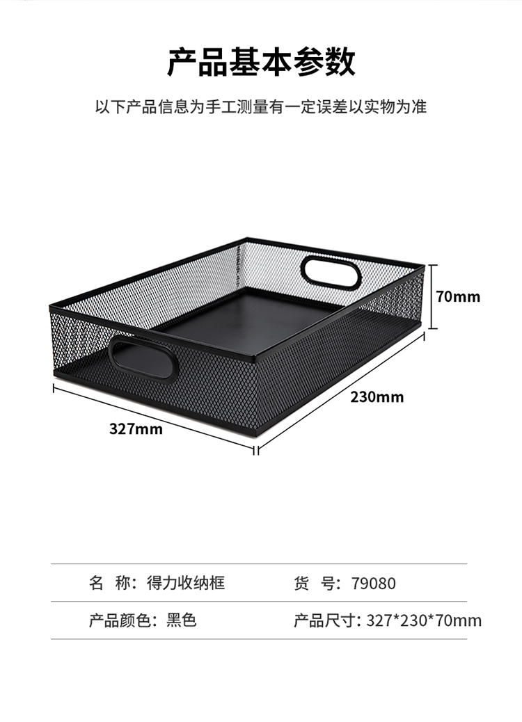 得力文件籃 79080 金屬方形鏤空網(wǎng)材文件收納框/收納籃 黑色 單位:個(gè)