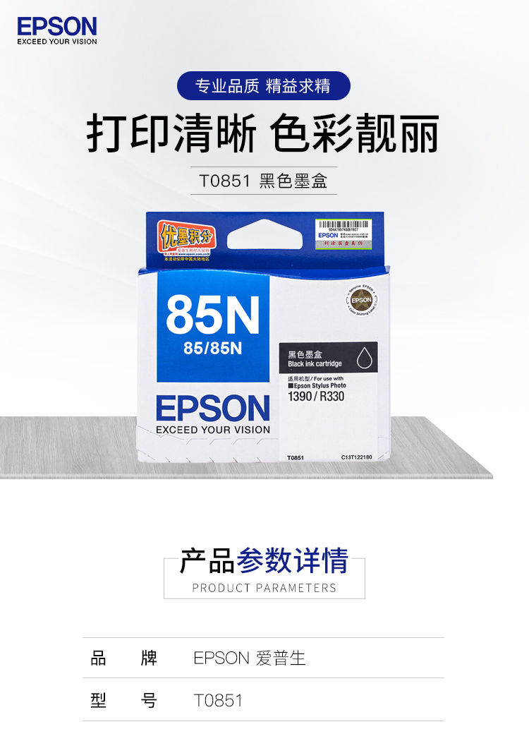 愛普生墨盒T0851 黑色墨盒 適用:PHOTO 1390 R330 單位:支