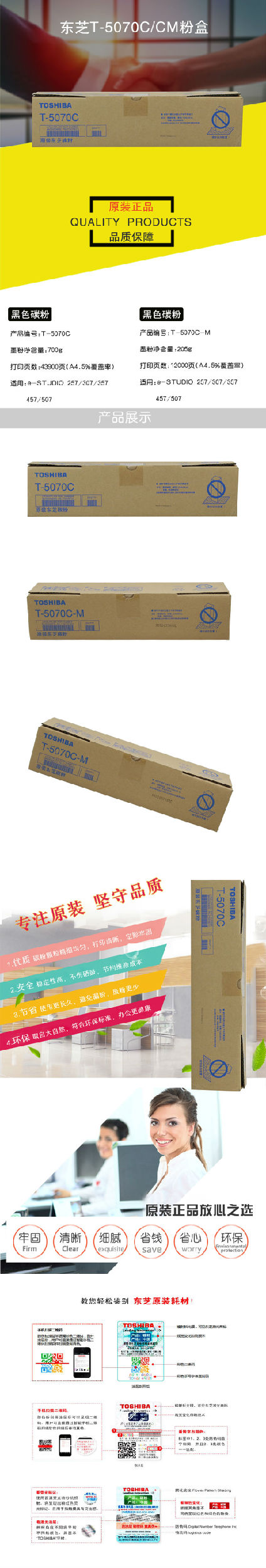 東芝墨粉 T-5070C 黑色粉盒 適用:257/307/357/457/507 單位:支