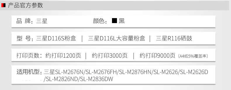三星硒鼓 MLT-R116 黑色硒鼓 適用:2876HN/2676N/2676FH/M2626 單位:支