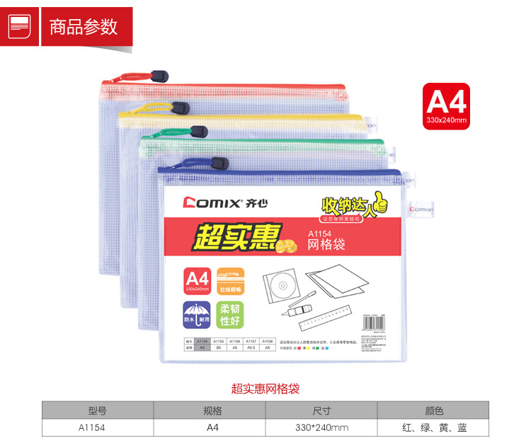 齊心拉鏈袋 A1154 網(wǎng)格拉鏈袋 單位:個(gè)