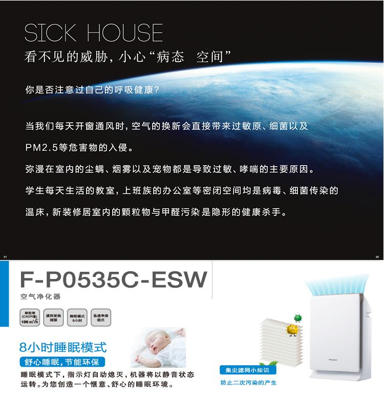 松下空氣凈化器 F-P0535C-ESW 空氣凈化器 單位:臺