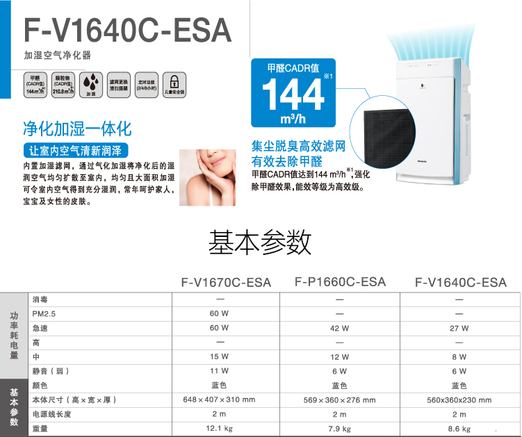 松下空氣凈化器 F-V1640C-ESA 空氣凈化器 單位:臺