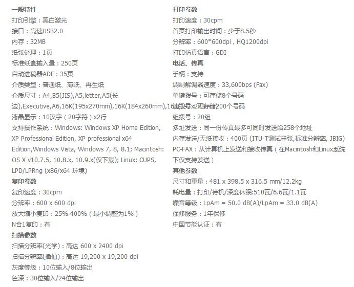 兄弟多功能一體機 MFC-7480D 黑白激光 單位:臺