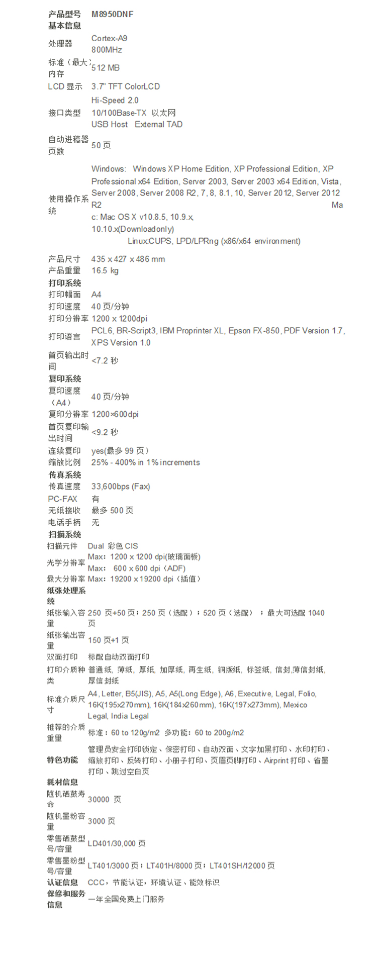 聯(lián)想多功能一體機(jī) M8950DNF 黑白激光 單位:臺(tái)