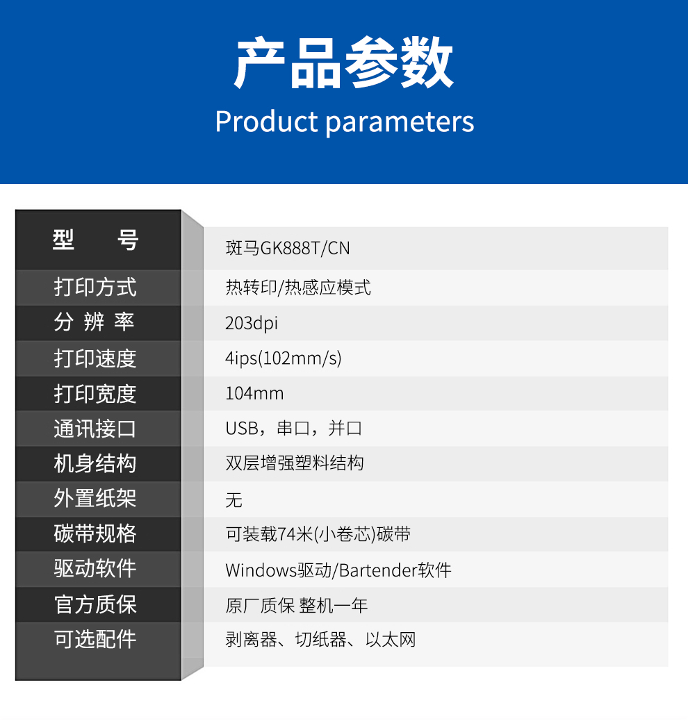 斑馬標(biāo)簽打印機(jī) GK888T 條碼打印機(jī) 單位:臺