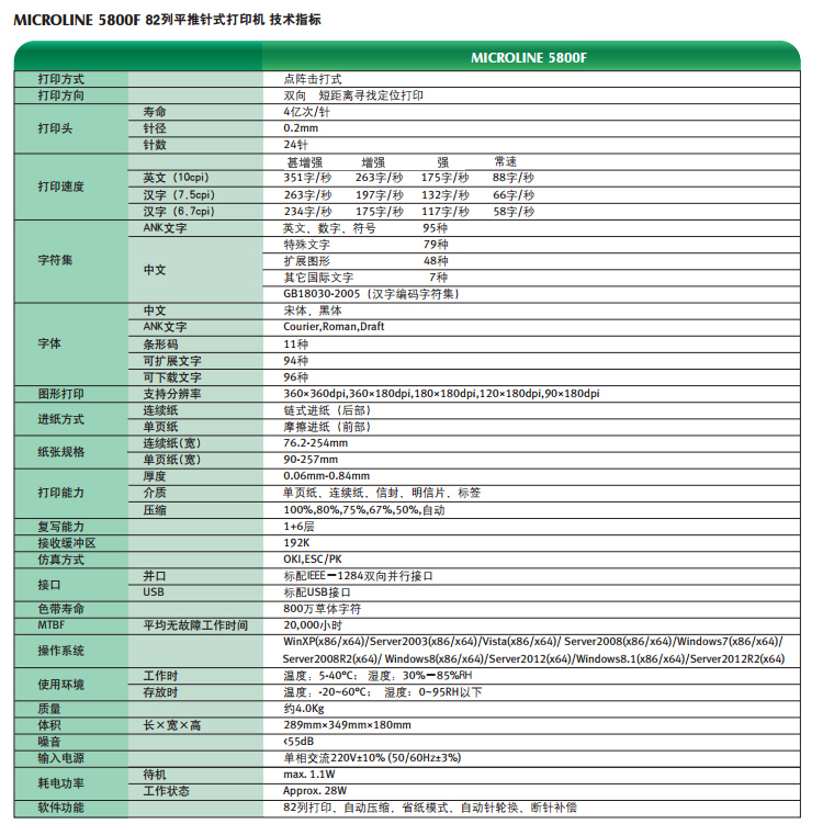 OKI針式打印機(jī) 5800F 單位:臺(tái)