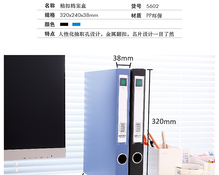 商品名稱:得力檔案盒文件資料盒 A4資料收納大塑料文件盒檔案盒 5602(寬38mm) 單個裝